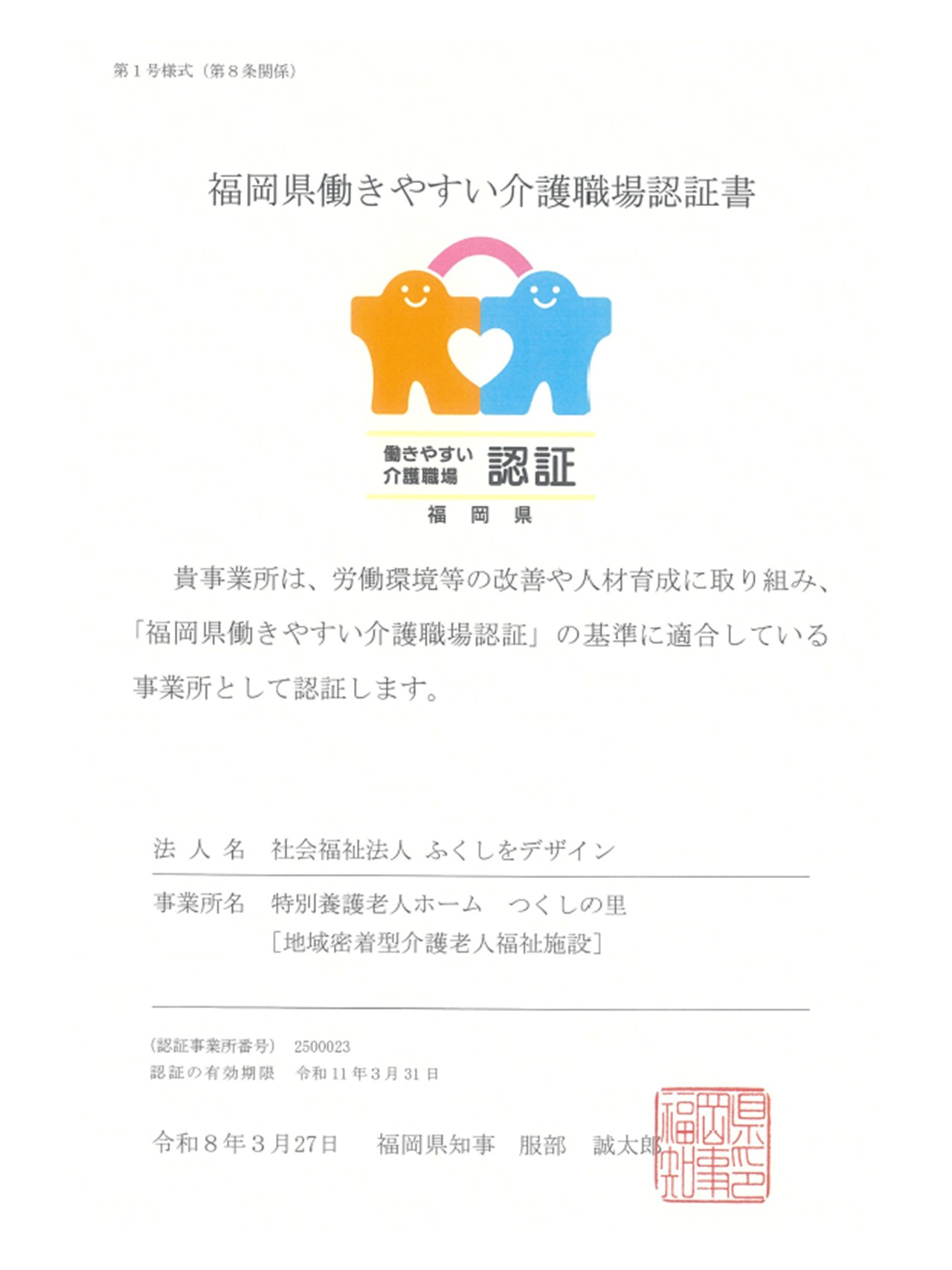 『福岡県働きやすい 介護職場認証制度』の交付を受けました✨